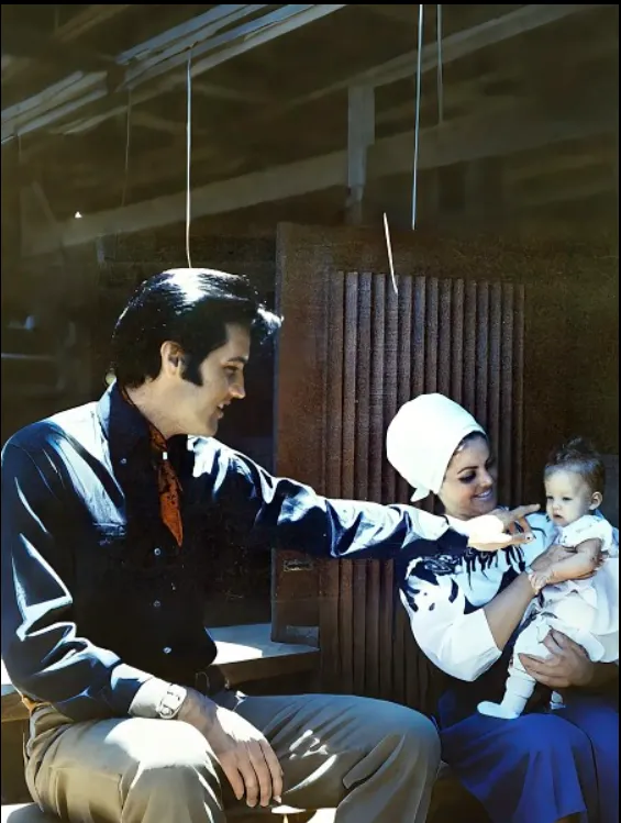 As Lisa Marie settled into his arms, awe replaced uncertainty. Love flooded in — deep, instinctive, and life-altering. From that moment on, everything shifted. Friends and family noticed it immediately: Elvis was different. Softer. More present. More protective. Lisa Marie became the emotional center of his world.