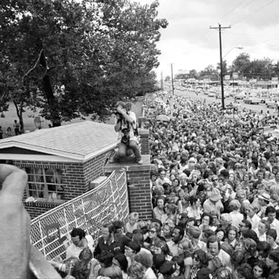 People who had grown up with his voice stepped out onto their porches, some holding radios that played his songs softly into the heavy summer air. Neighbors who rarely spoke stood shoulder to shoulder on street corners, and families leaned against the shade of maple trees, their breaths held as if an exhale too loud might shatter the fragile stillness of the moment. From the outskirts of town to the roads leading toward Graceland, the atmosphere was the same: reverent, hushed, suspended.